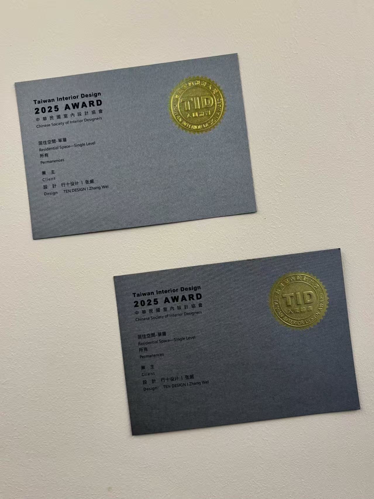 收到作品「井质」和「几许」TID台湾室内设计大奖奖牌